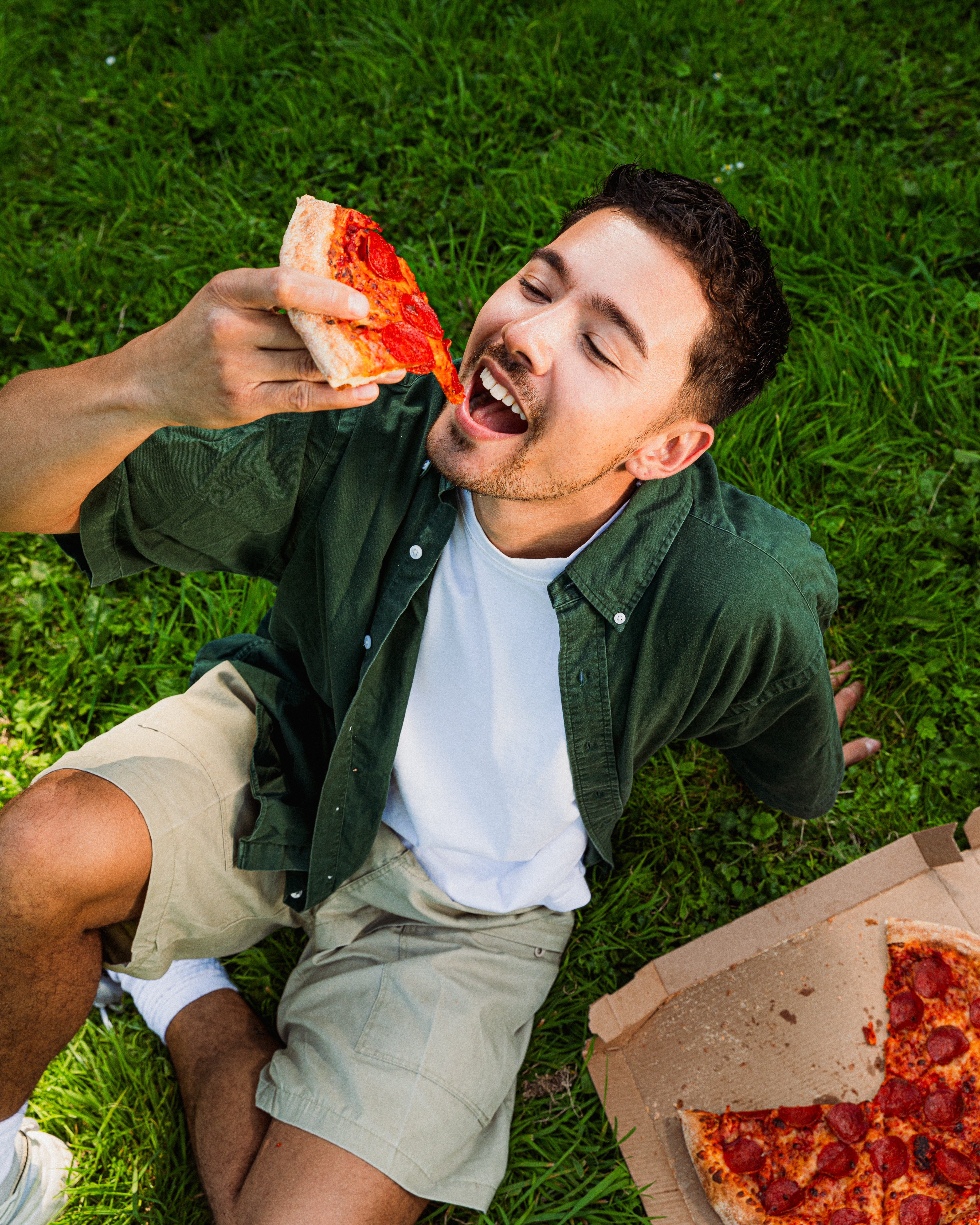 With this pizza shoot, it was all about fun, the kind of fun that comes from grabbing a slice at the park with your friends on a warm day.